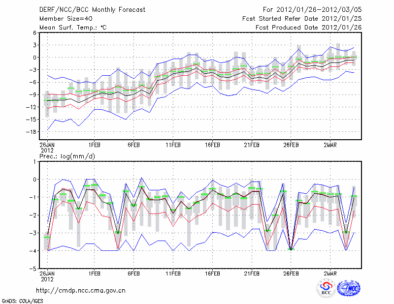 酒 泉 (LAT:39.77 LON:98.48) 2012-01-26        预测