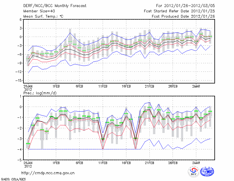 西 宁 (LAT:36.62 LON:101.77) 2012-01-26        预测