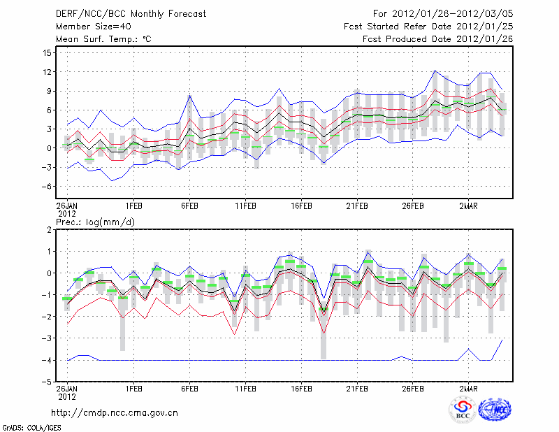 西 安 (LAT:34.30 LON:108.93) 2012-01-26        预测