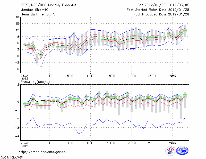 恩 施 (LAT:30.28 LON:109.47) 2012-01-26        预测