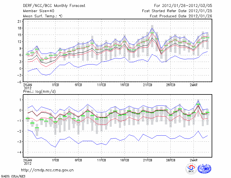 毕 节 (LAT:27.30 LON:105.23) 2012-01-26        预测