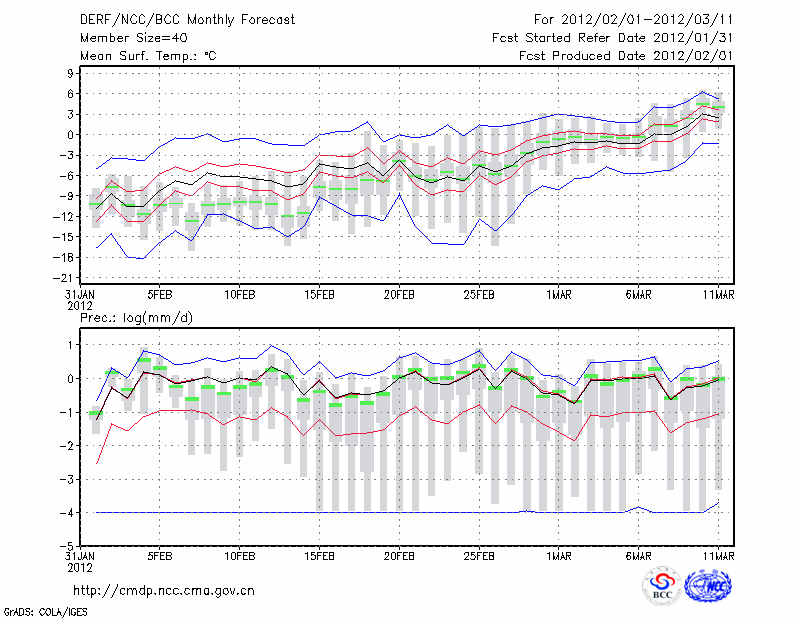 伊 宁 (LAT:43.95 LON:81.33) 2012-02-01        预测
