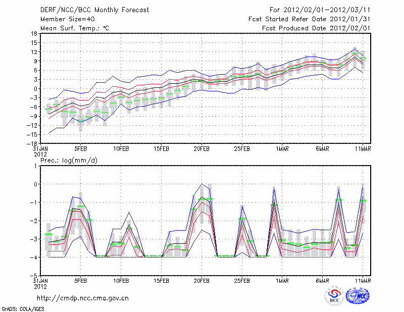 吐 鲁 番 (LAT:42.93 LON:89.20) 2012-02-01        预测