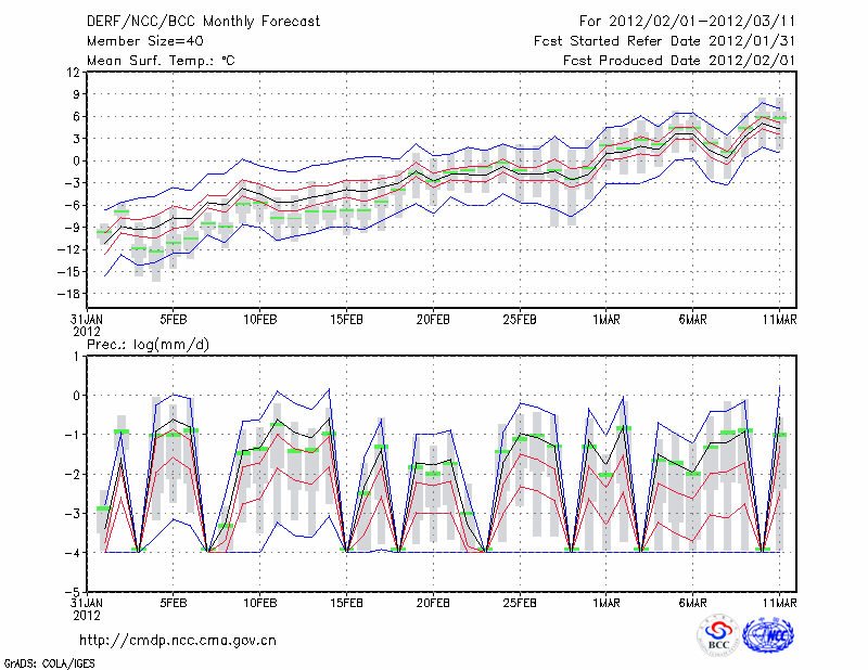 哈 密 (LAT:42.82 LON:93.52) 2012-02-01        预测