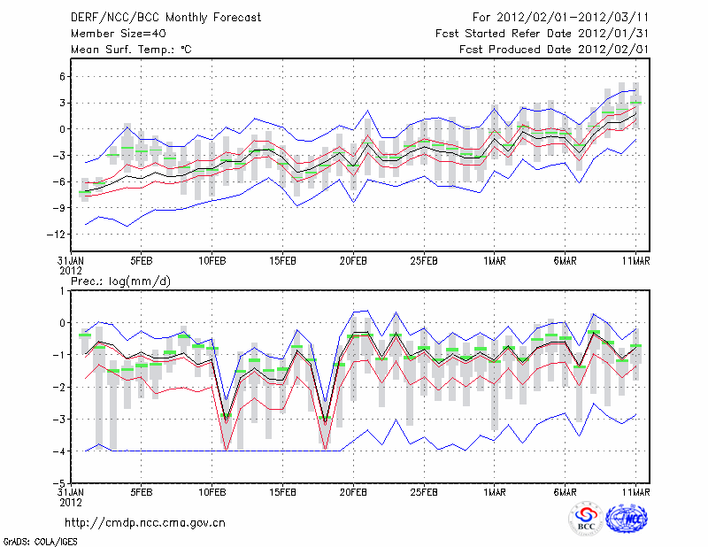 西 宁 (LAT:36.62 LON:101.77) 2012-02-01        预测