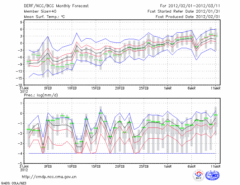 银 川 (LAT:38.48 LON:106.22) 2012-02-01        预测