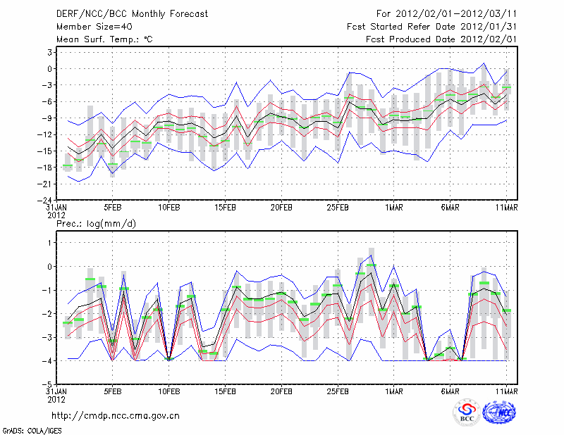 林 东 (LAT:43.98 LON:119.40) 2012-02-01        预测