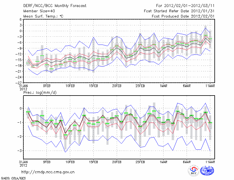 牡 丹 江 (LAT:44.57 LON:129.60) 2012-02-01        预测