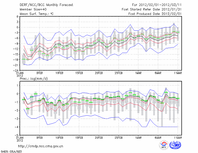 通 化 (LAT:41.68 LON:125.90) 2012-02-01        预测