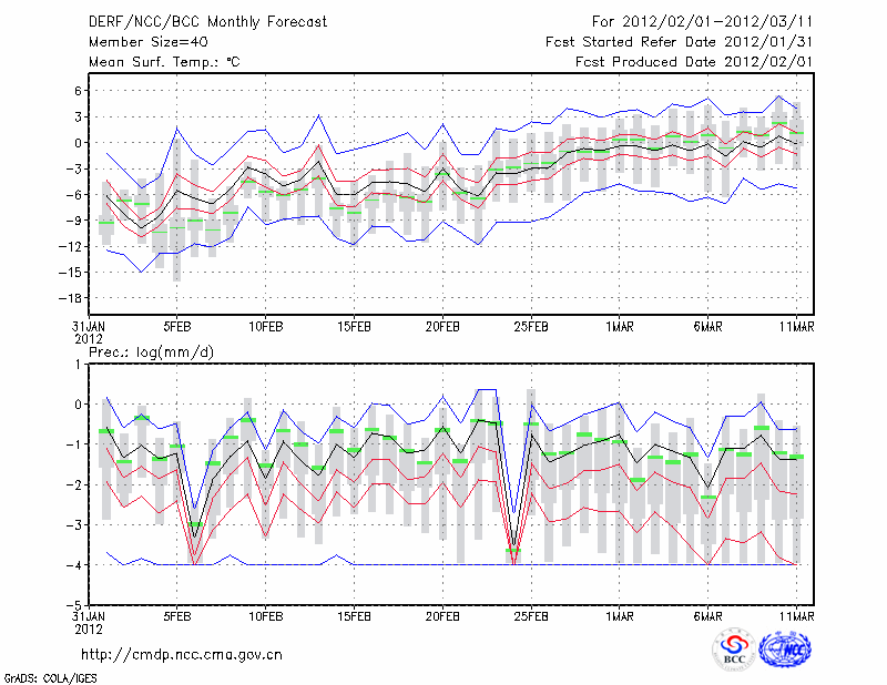 张 家 口 (LAT:40.78 LON:114.88) 2012-02-01        预测