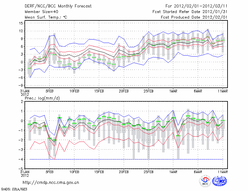 郑 州 (LAT:34.72 LON:113.65) 2012-02-01        预测