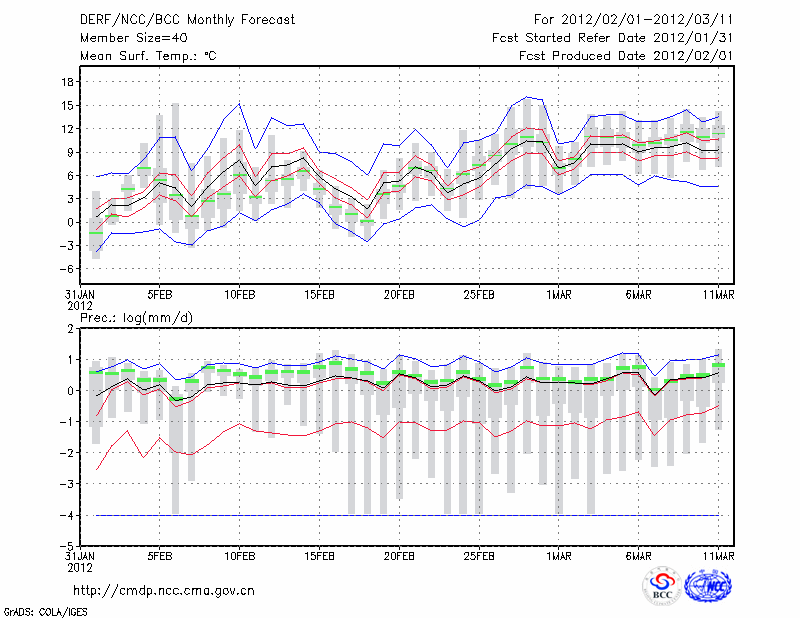 合 肥 (LAT:31.87 LON:117.23) 2012-02-01        预测