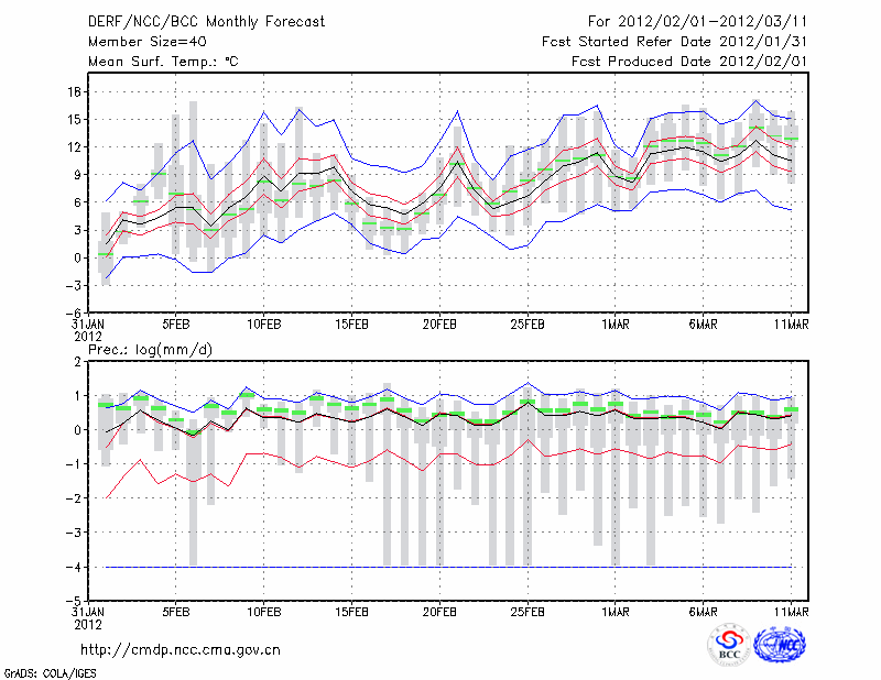 安 庆 (LAT:30.53 LON:117.05) 2012-02-01        预测
