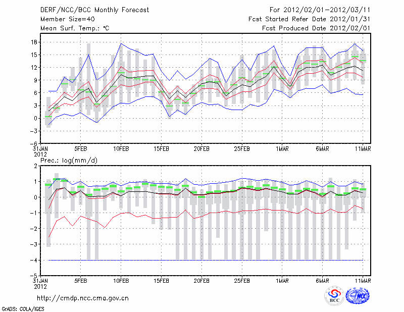 杭 州 (LAT:30.23 LON:120.17) 2012-02-01        预测