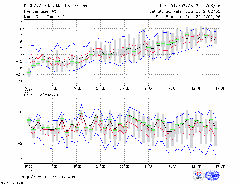 鸡 西 (LAT:45.28 LON:130.95) 2012-02-06        预测