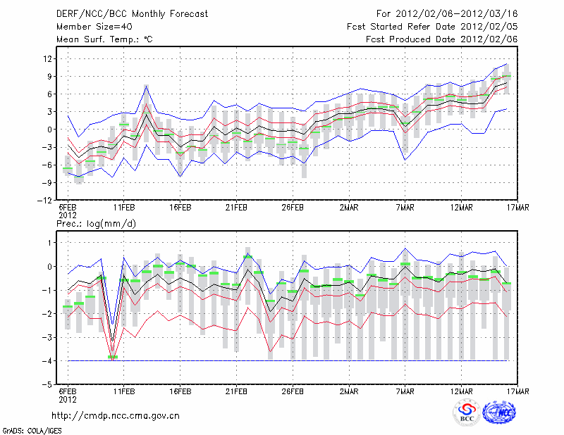 延 安 (LAT:36.60 LON:109.50) 2012-02-06        预测