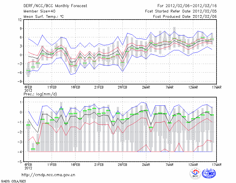 青 岛 (LAT:36.07 LON:120.33) 2012-02-06        预测