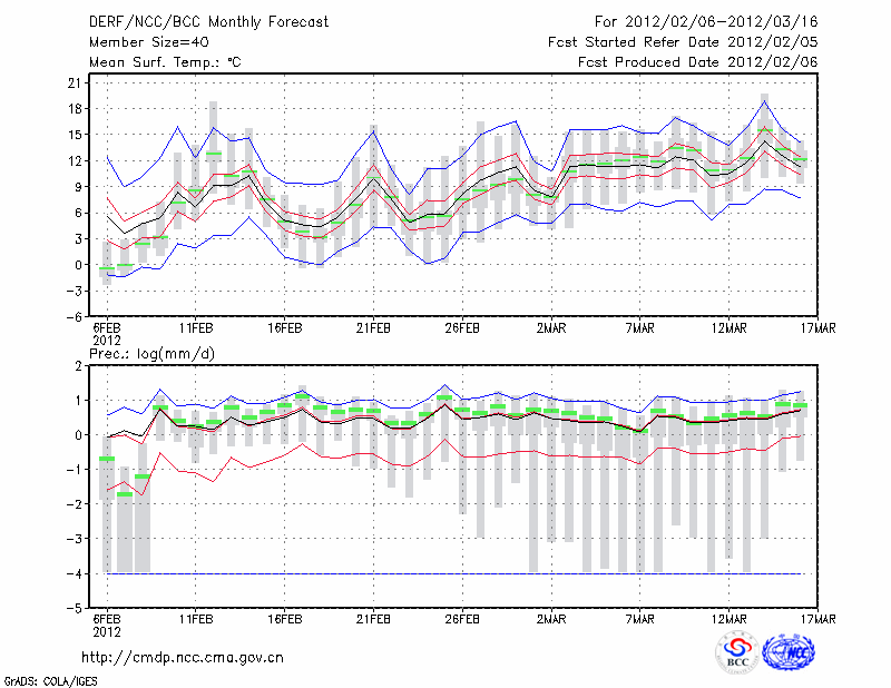 安 庆 (LAT:30.53 LON:117.05) 2012-02-06        预测