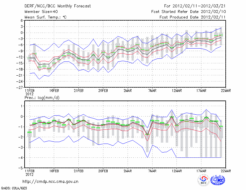 哈 尔 滨 (LAT:45.75 LON:126.77) 2012-02-11        预测