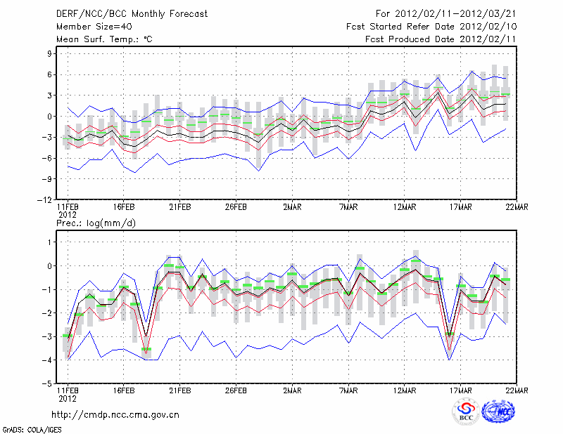 西 宁 (LAT:36.62 LON:101.77) 2012-02-11        预测