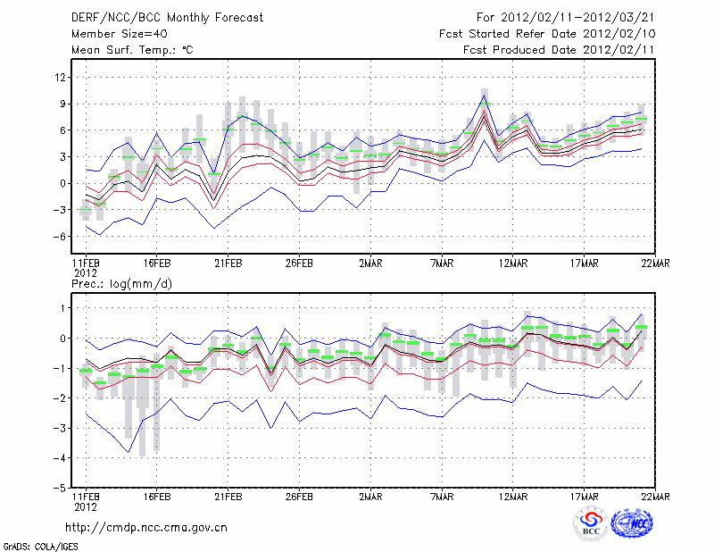 甘 孜 (LAT:31.62 LON:100.00) 2012-02-11        预测
