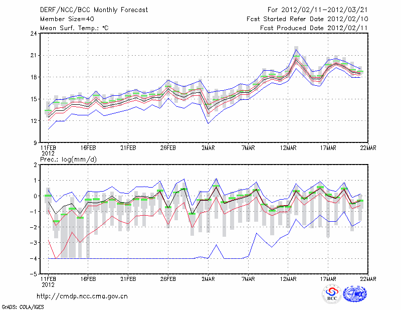 临 沧 (LAT:23.95 LON:100.22) 2012-02-11        预测