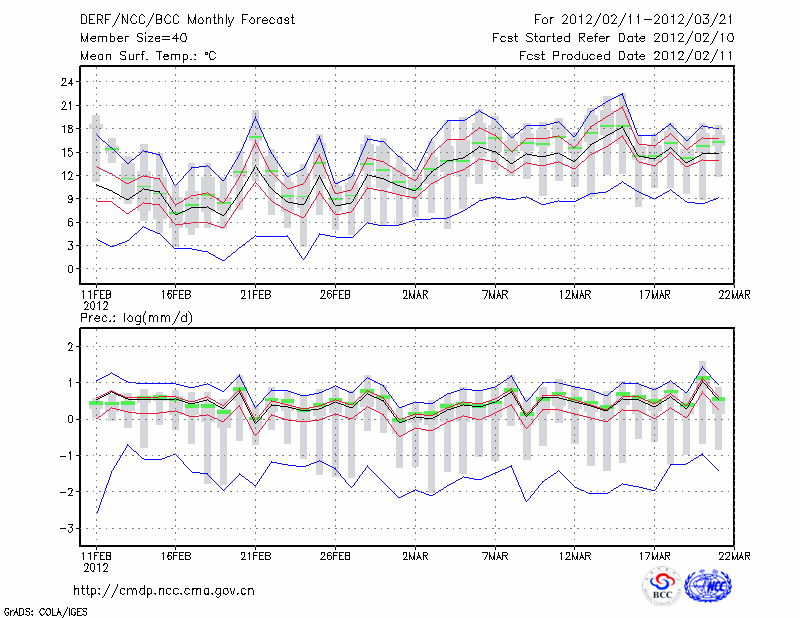 芷 江 (LAT:27.45 LON:109.68) 2012-02-11        预测