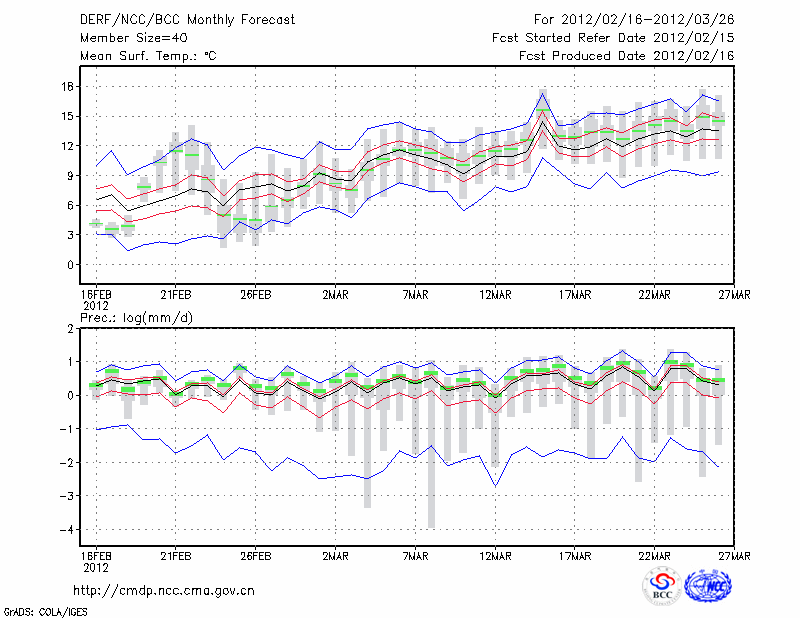 恩 施 (LAT:30.28 LON:109.47) 2012-02-16        预测