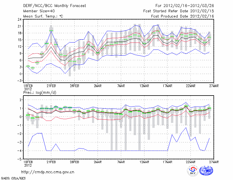 南 昌 (LAT:28.60 LON:115.92) 2012-02-16        预测