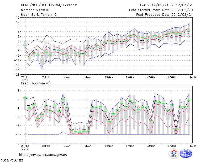 赤 峰 (LAT:42.27 LON:118.97) 2012-02-21        预测