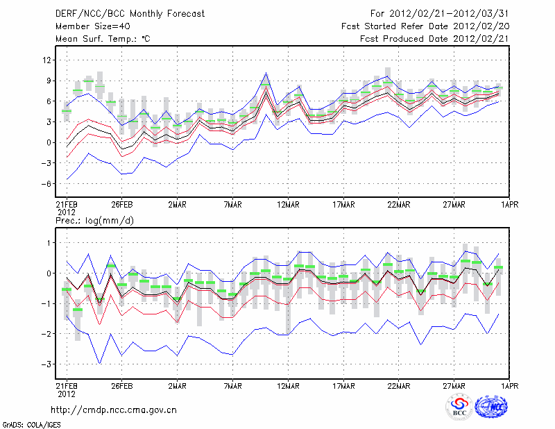 甘 孜 (LAT:31.62 LON:100.00) 2012-02-21        预测