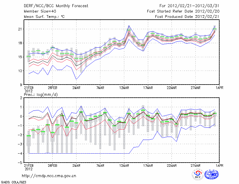 临 沧 (LAT:23.95 LON:100.22) 2012-02-21        预测