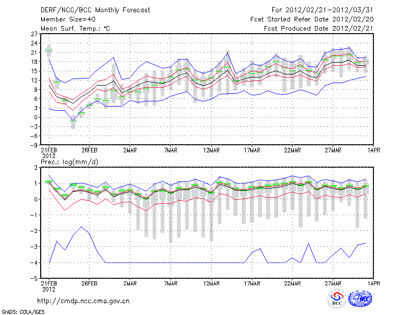 岳 阳 (LAT:29.38 LON:113.08) 2012-02-21        预测