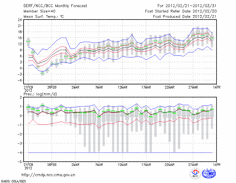 合 肥 (LAT:31.87 LON:117.23) 2012-02-21        预测