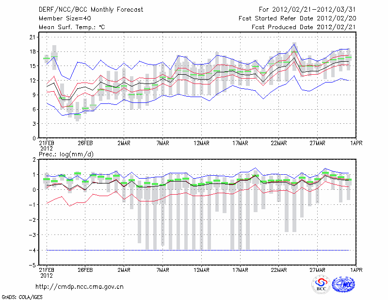 温 州 (LAT:28.02 LON:120.67) 2012-02-21        预测