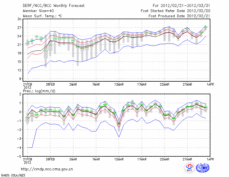 百 色 (LAT:23.90 LON:106.60) 2012-02-21        预测