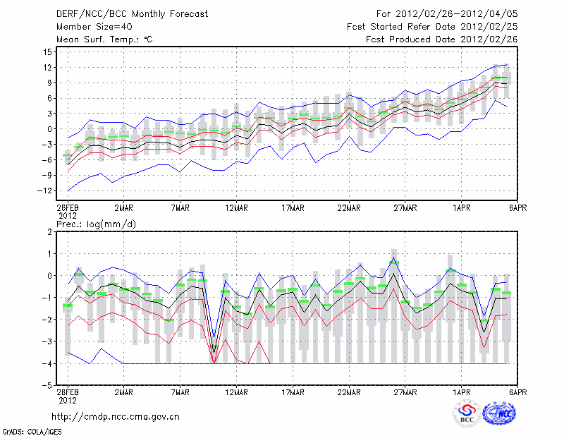 呼和浩特 (LAT:40.82 LON:111.68) 2012-02-26        预测