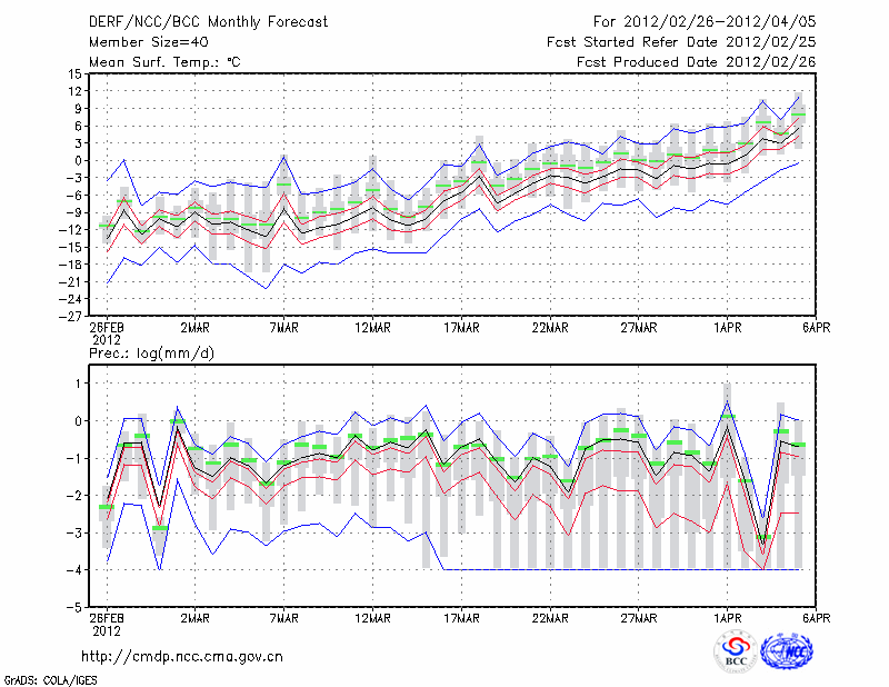 锡林浩特 (LAT:43.95 LON:116.07) 2012-02-26        预测