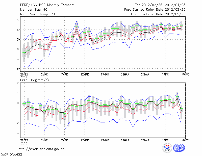 甘 孜 (LAT:31.62 LON:100.00) 2012-02-26        预测