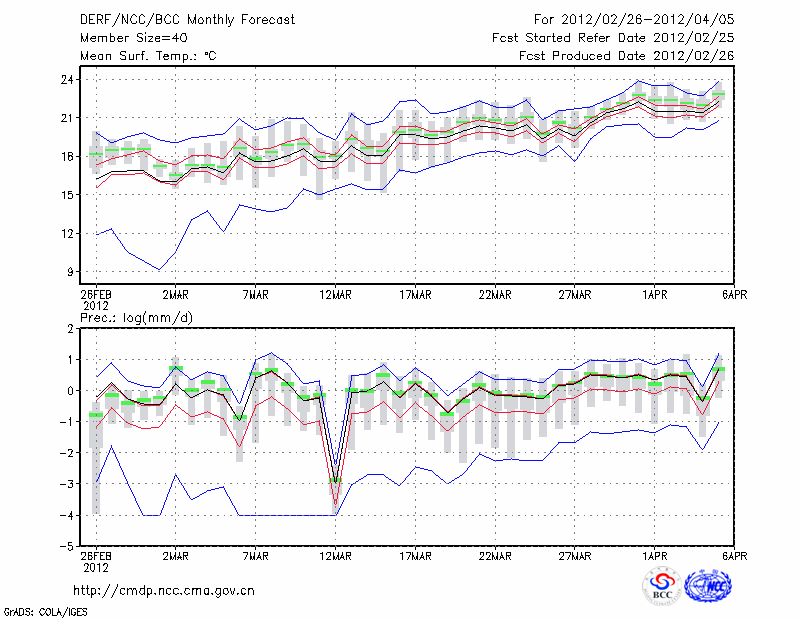 蒙 自 (LAT:23.38 LON:103.38) 2012-02-26        预测
