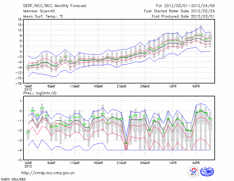乌兰浩特 (LAT:46.08 LON:122.05) 2012-03-01        预测