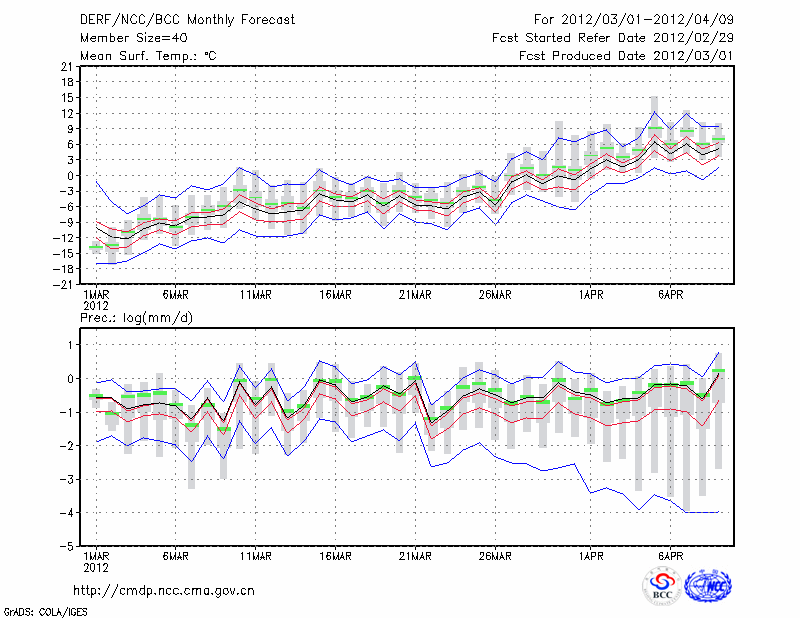 佳 木 斯 (LAT:46.49 LON:130.17) 2012-03-01        预测