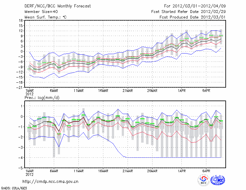 哈 尔 滨 (LAT:45.75 LON:126.77) 2012-03-01        预测