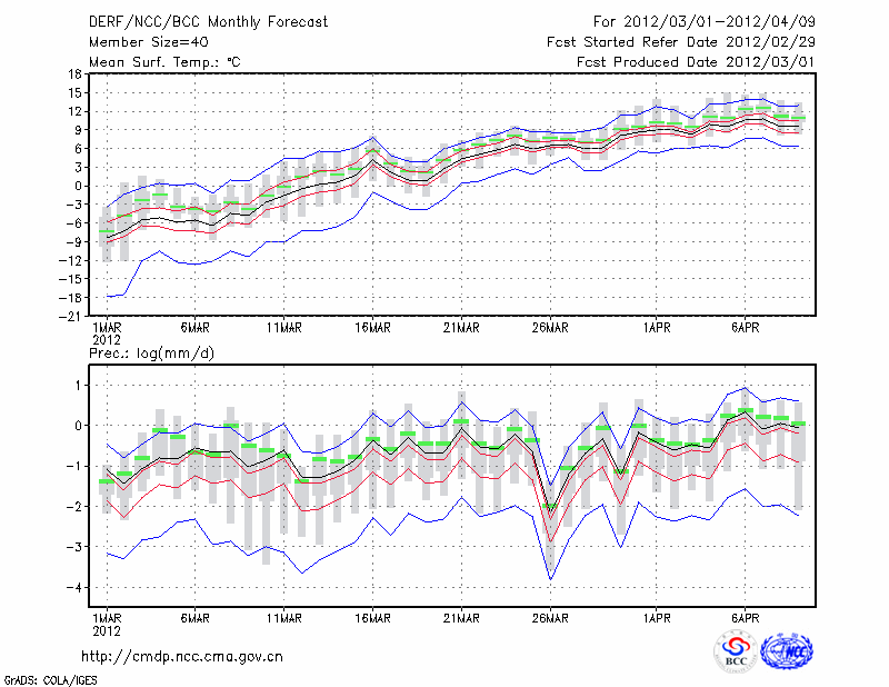 乌 苏 (LAT:44.43 LON:84.66) 2012-03-01        预测