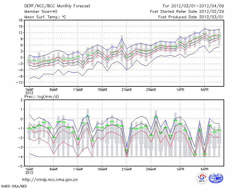 包 头 (LAT:40.66 LON:109.85) 2012-03-01        预测