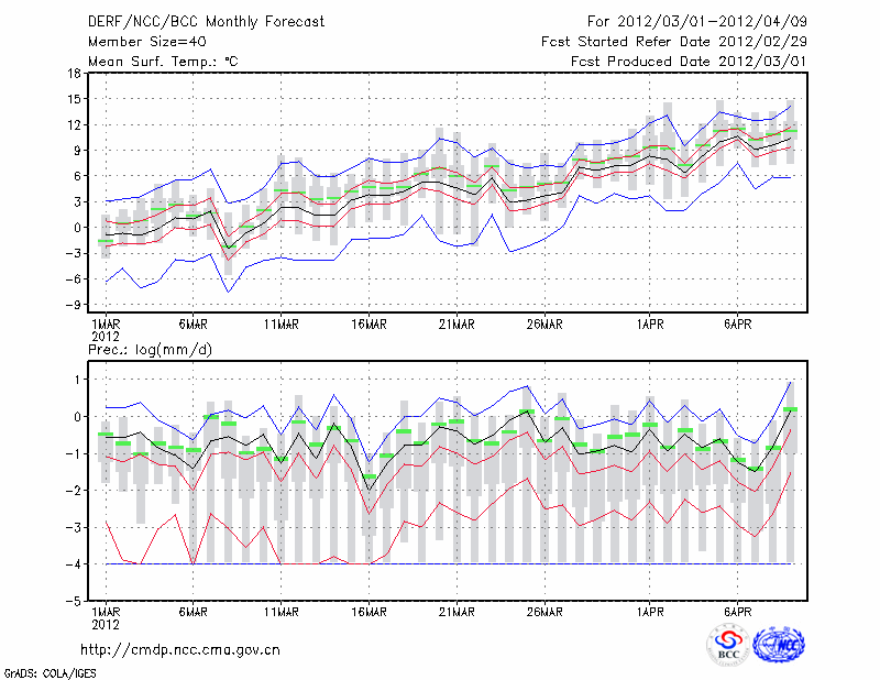 榆 林 (LAT:38.23 LON:109.70) 2012-03-01        预测
