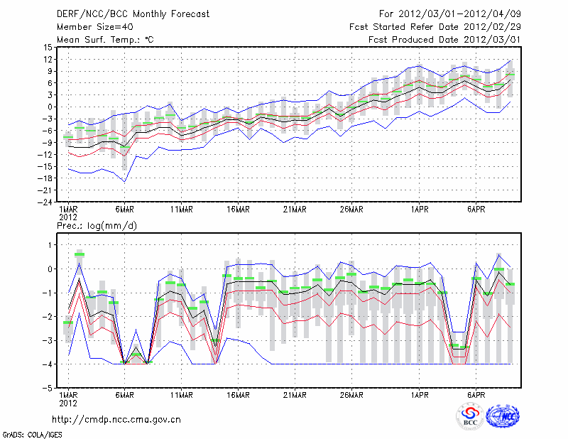 林 东 (LAT:43.98 LON:119.40) 2012-03-01        预测
