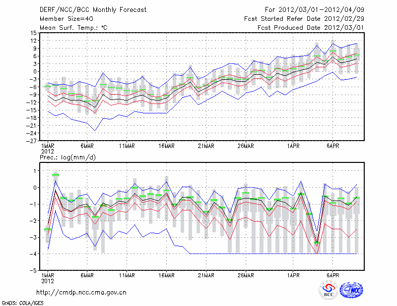 锡林浩特 (LAT:43.95 LON:116.07) 2012-03-01        预测