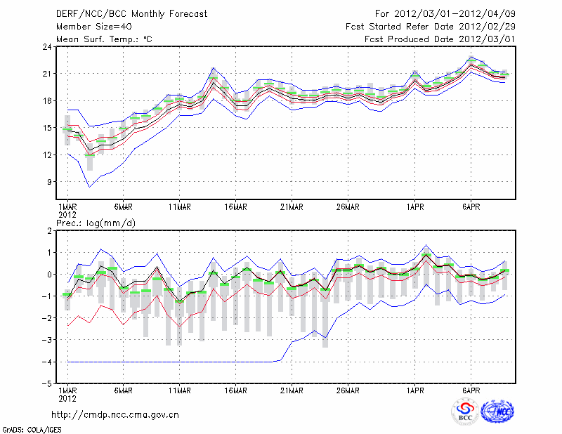 临 沧 (LAT:23.95 LON:100.22) 2012-03-01        预测