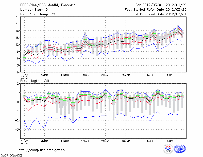 恩 施 (LAT:30.28 LON:109.47) 2012-03-01        预测